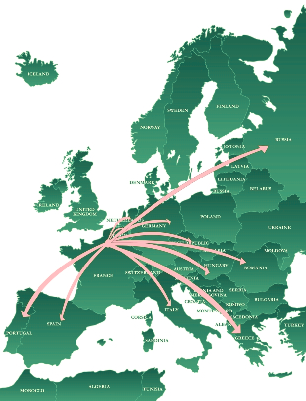 Implantée sur les marchés, Espagnols, Portugais, Grecques et Italiens depuis plus de 15 ans, notre activité s’est également développée depuis quelques années vers les pays de l’Est.